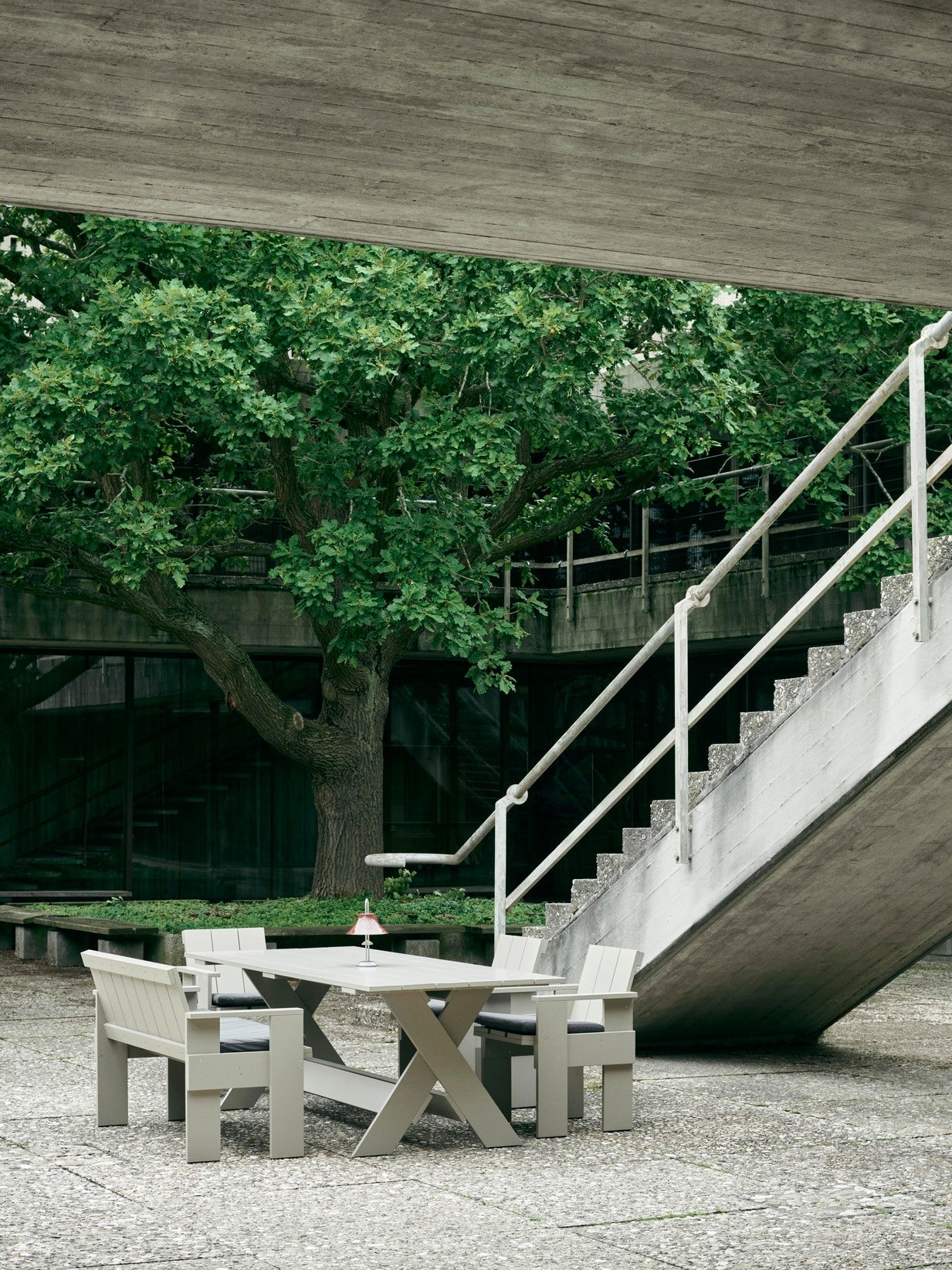 Initially designed to make use of surplus wooden shipping crates by Dutch architect and designer Gerrit Rietveld in 1934, the Crate Collection has been relaunched in a Rietveld Originals x HAY collaboration. Made with respect for the original design, the Crate Dining Chair shares the same precisely balanced proportions and transparent construction to minimise production costs and optimise the assembly process. Featuring a gently sloping back and supportive armrests, the chair’s simplicity and spatial design mirrors the designer’s architectural style – providing functionality and comfort without absorbing space. Crafted in solid pine, with a water-based lacquered finish in different colour options, the Crate Dining Chair is suitable for a wealth of outdoor settings, and can be supplemented with optional seat cushions in selected textiles for extra comfort.