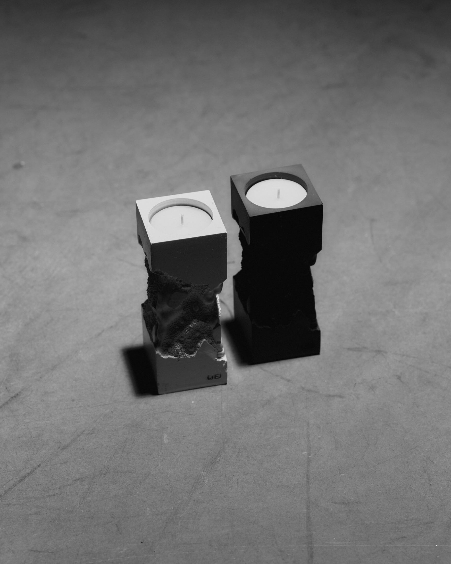 EXCAVATION CANDLEHOLDER by Jacob Egeberg, made from cast concrete in different colorways.