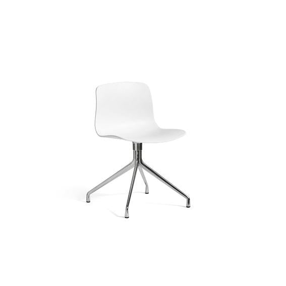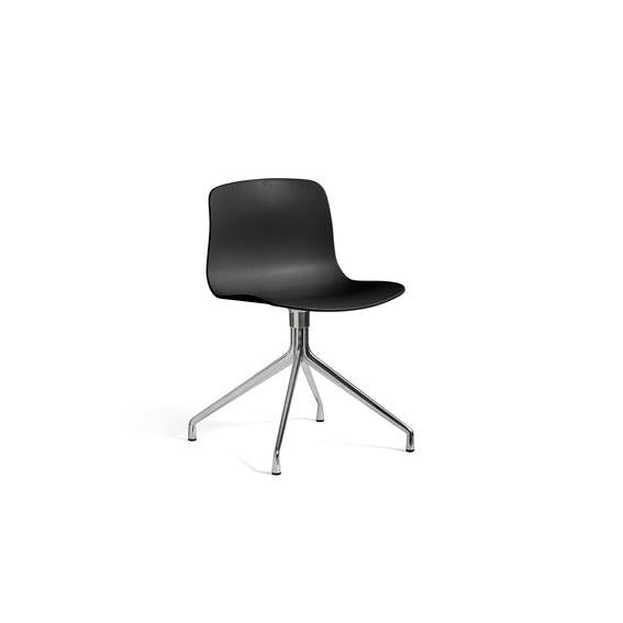 Featuring a swivel base in steel, the About A Chair AAC10 conveys a more formal expression than its wooden-legged counterparts from the series. Retaining the same open, curved shell and legs that fan out from the centred base. The cast aluminium swivel base is available in polished or powder coated finishes, and the polypropylene shell comes in diverse colour options, allowing a multitude of design combinations that make this series so versatile.