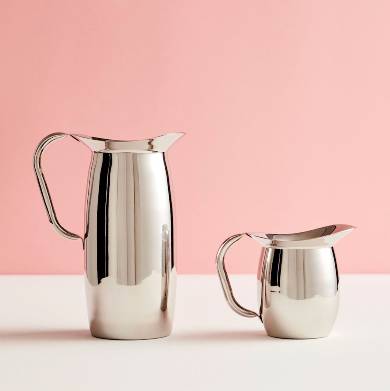 A minimal take on a classic form, this stainless steel pitcher by the renowned brand HAY features a slim handle and wide-rimmed spout for precise pouring. Its polished surface and streamlined silhouette make it a versatile addition to any setting — from dining table to display shelf.