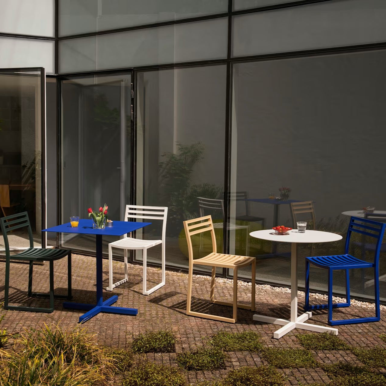 The Chop Table by Philippe Malouin is an evergreen design conceived for use in a range of public and private outdoor spaces. Intentionally simple, in both construction and aesthetics, the Chop collection reimagines classic archetypes to create pieces that are immediately recognizable, yet pleasingly unknown. The Chop table has a central rectangular column and a four-pronged base. It is heavily influenced by Malouin’s work in the art world, where he often utilizes hand-led industrial techniques to develop elegant paired-back forms. The table is available with a square or round top, and is suitable for a range of different spaces and layouts. Chop is made from a durable stainless steel, and is available in a raw, sandblasted or powder-coated colored finish.