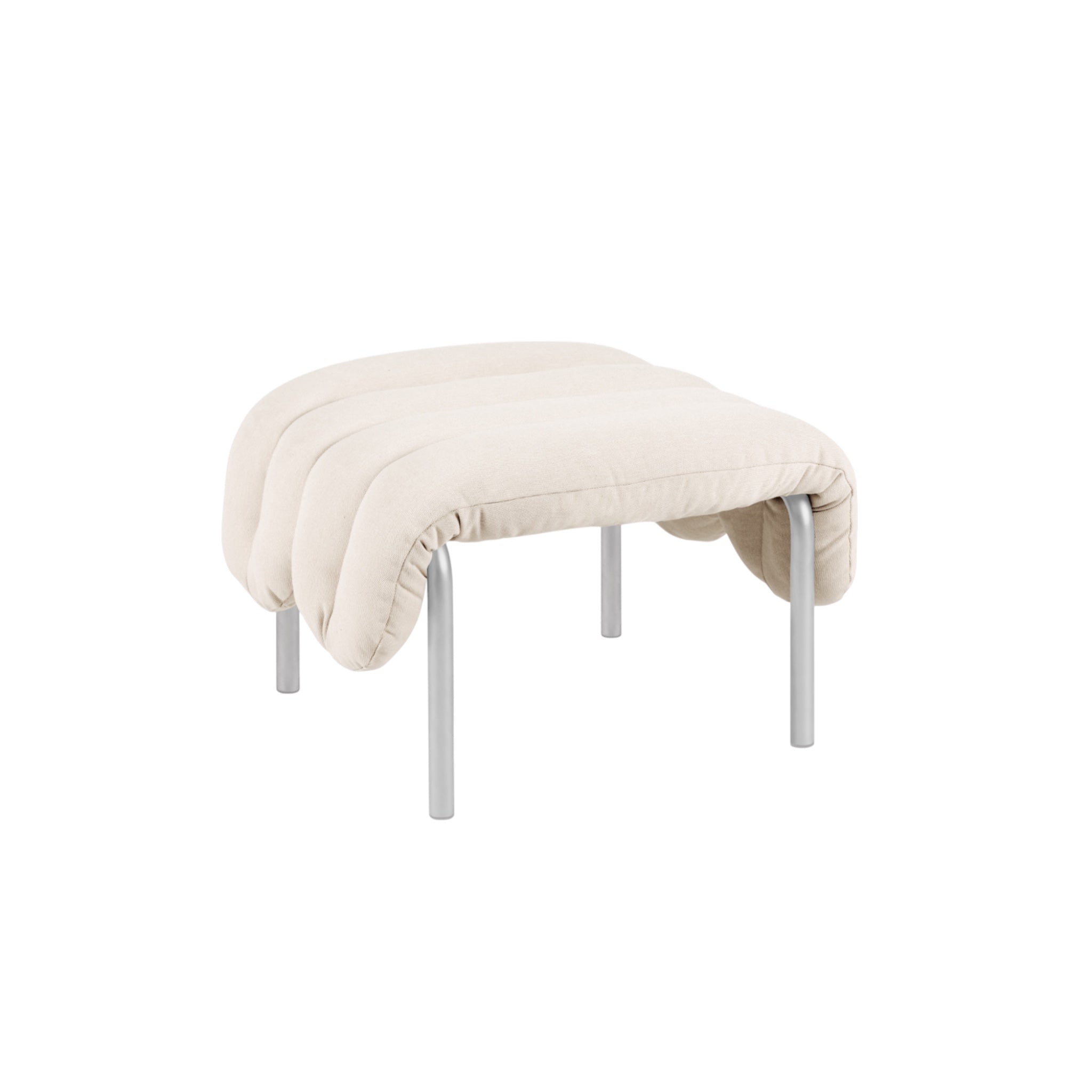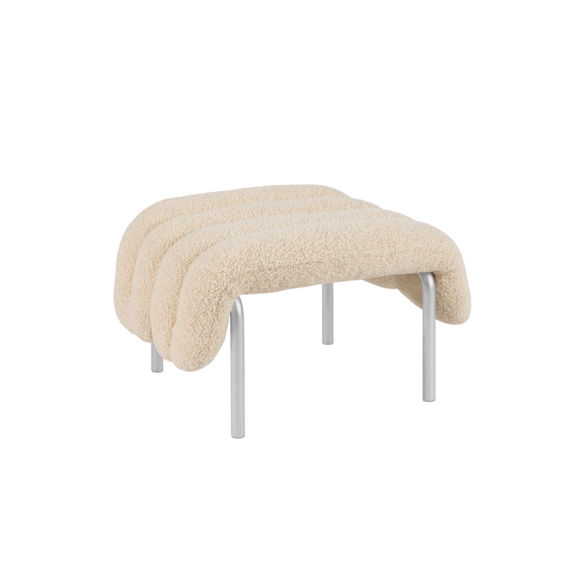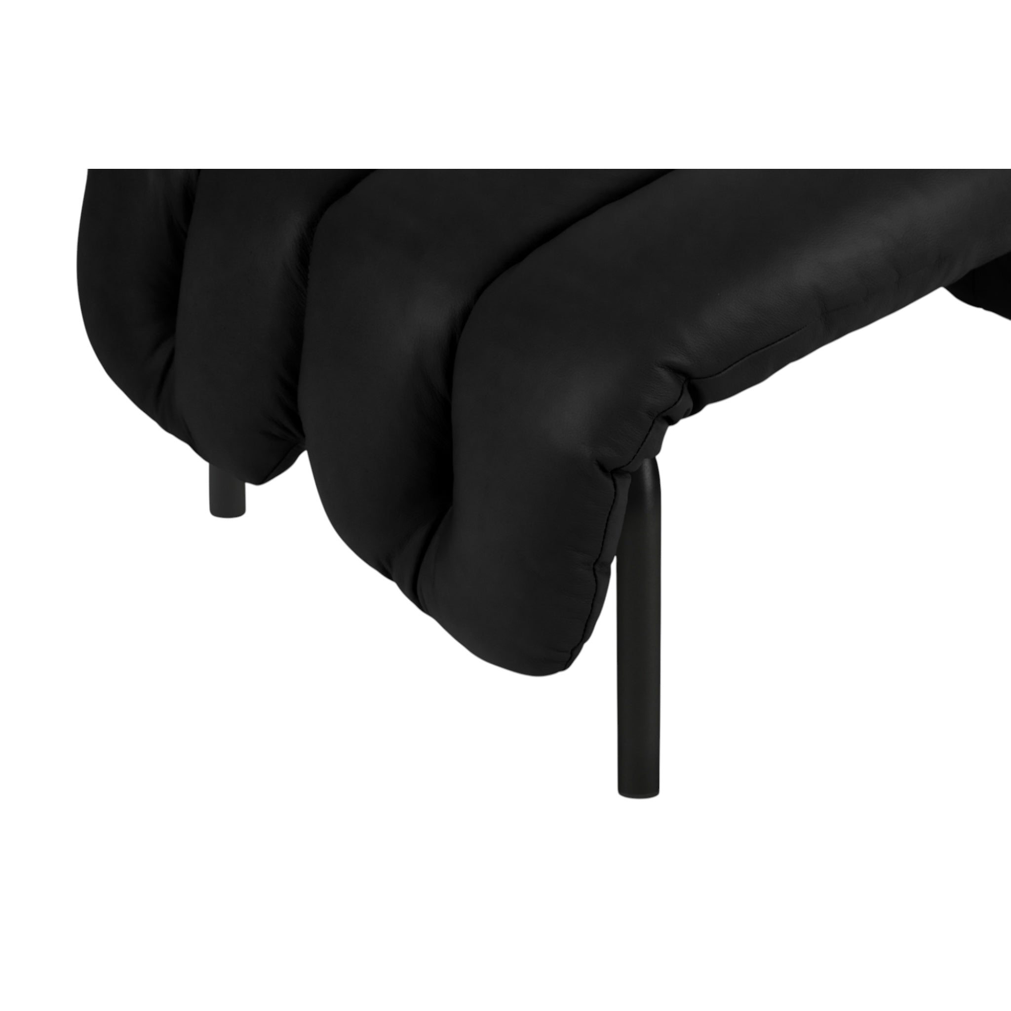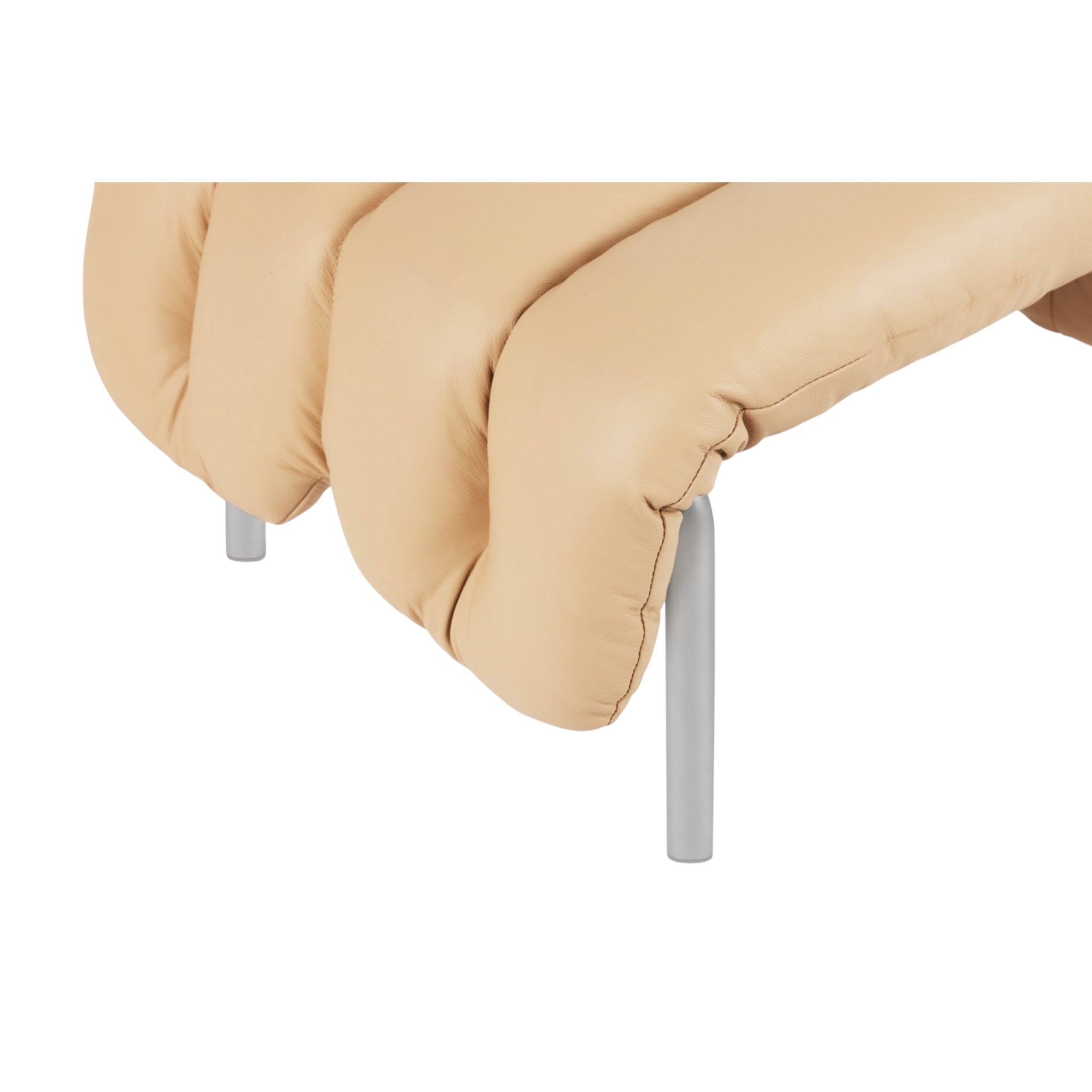 The detachable upholstery of the Puffy Lounge Chair is fat and plump, its generous shape spills freely over the sides of a tubular steel frame which, in stark contrast, is hard-lined and strong. The two key elements of this seating design by Faye Toogood are in purposeful and playful juxtaposition. The elementary frame is inspired by the rational structure of classic modernist design, whilst the extravagant quilt-like upholstery warmly embraces and envelopes, is comforting and reassuring. The Puffy Chair frame is available in powder-coated or sand-blasted steel finishes and a choice of thick canvas, chunky bouclé or luxurious leather upholstery.