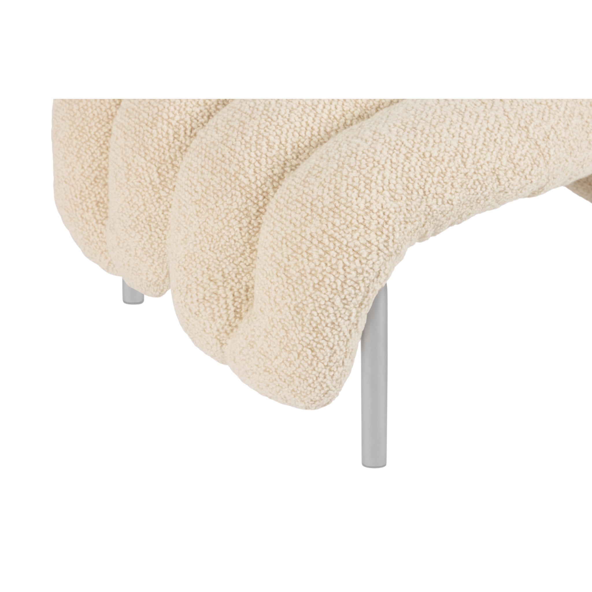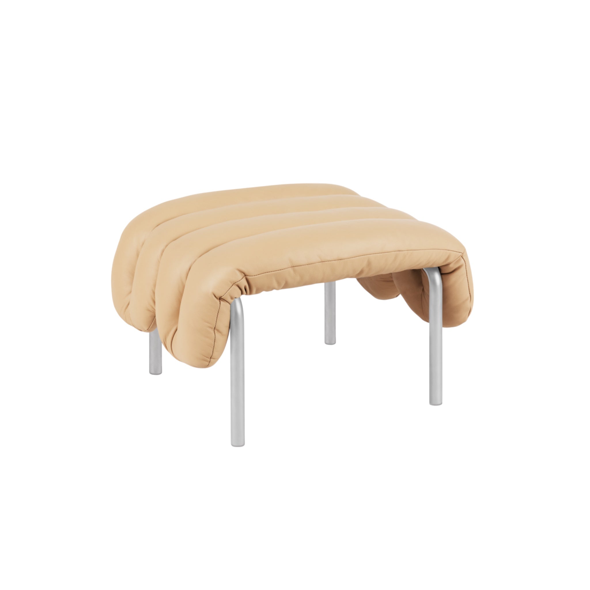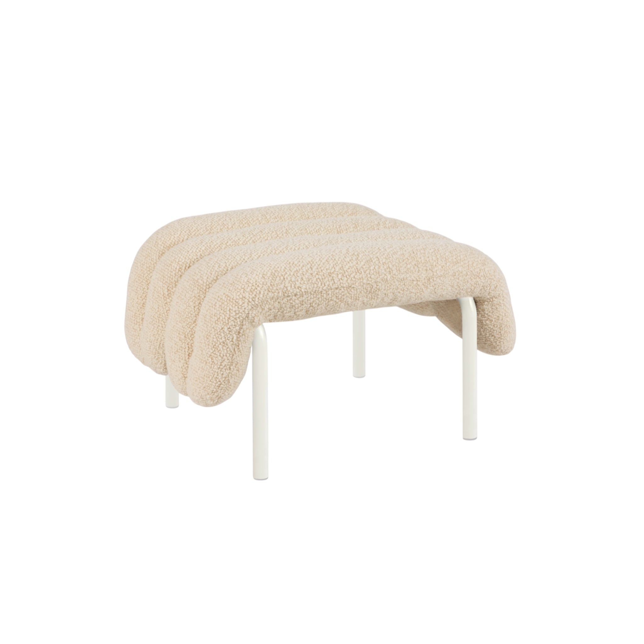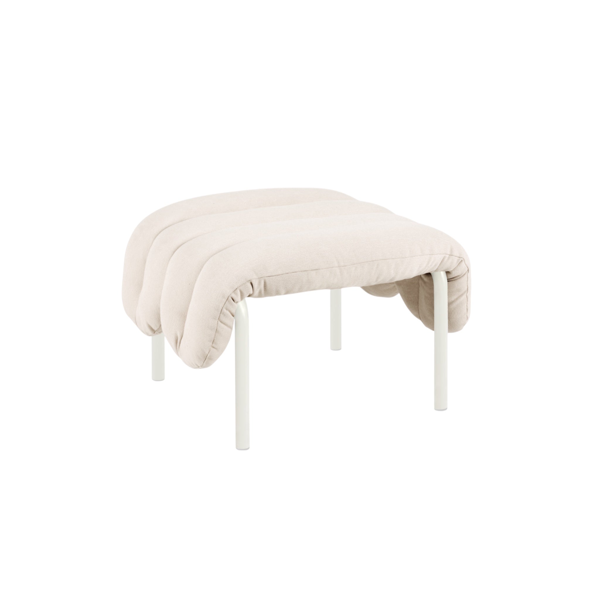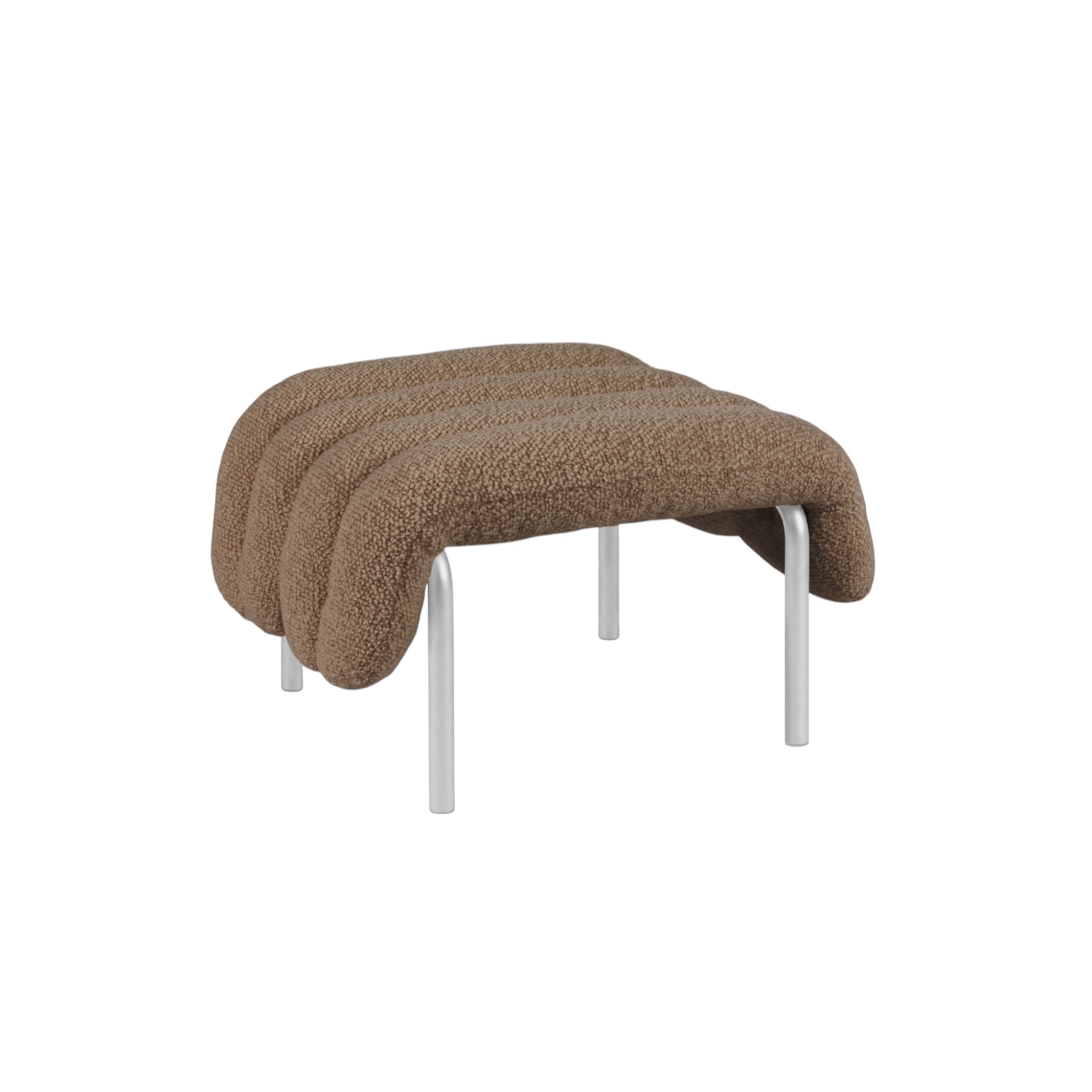 The detachable upholstery of the Puffy Lounge Chair is fat and plump, its generous shape spills freely over the sides of a tubular steel frame which, in stark contrast, is hard-lined and strong. The two key elements of this seating design by Faye Toogood are in purposeful and playful juxtaposition. The elementary frame is inspired by the rational structure of classic modernist design, whilst the extravagant quilt-like upholstery warmly embraces and envelopes, is comforting and reassuring. The Puffy Chair frame is available in powder-coated or sand-blasted steel finishes and a choice of thick canvas, chunky bouclé or luxurious leather upholstery.