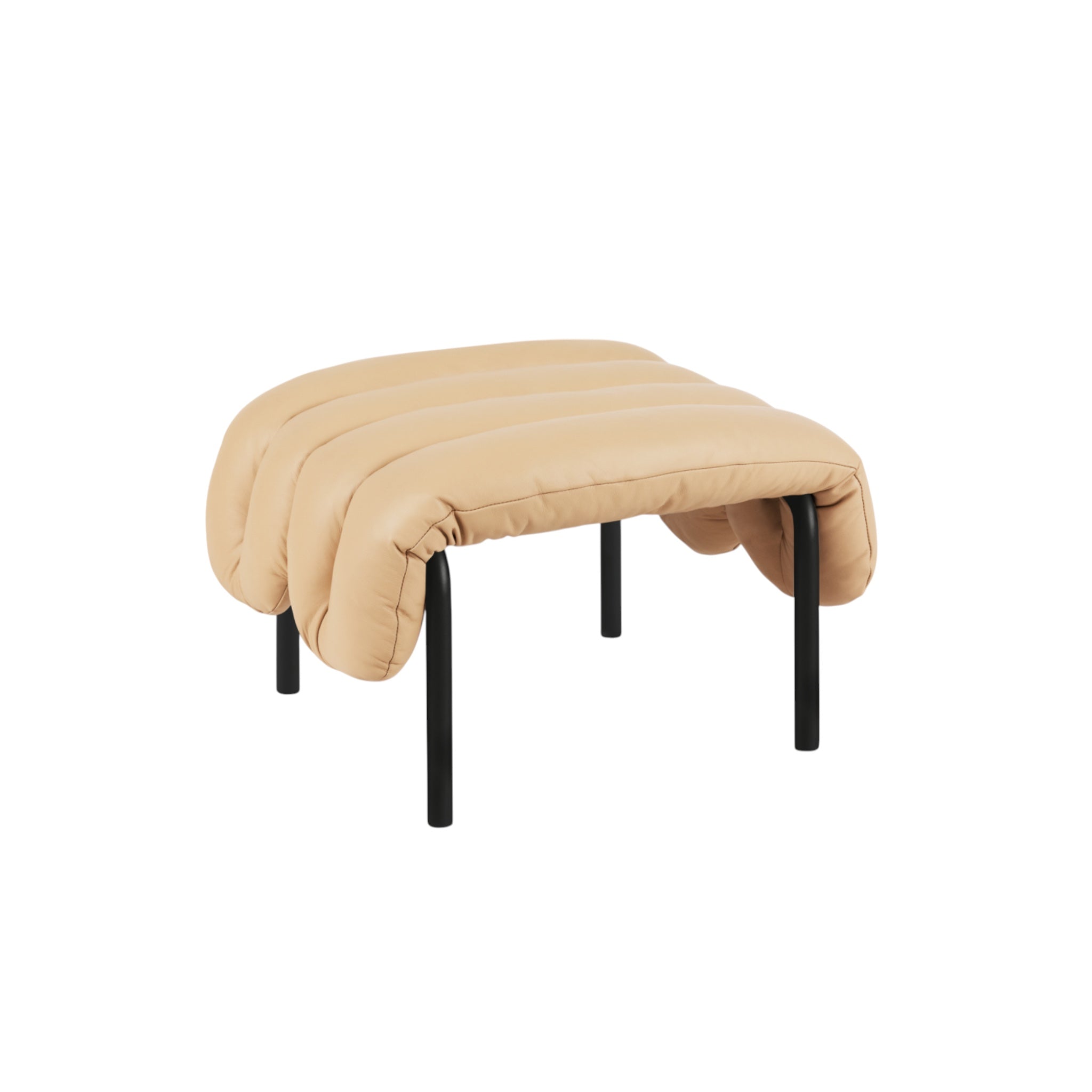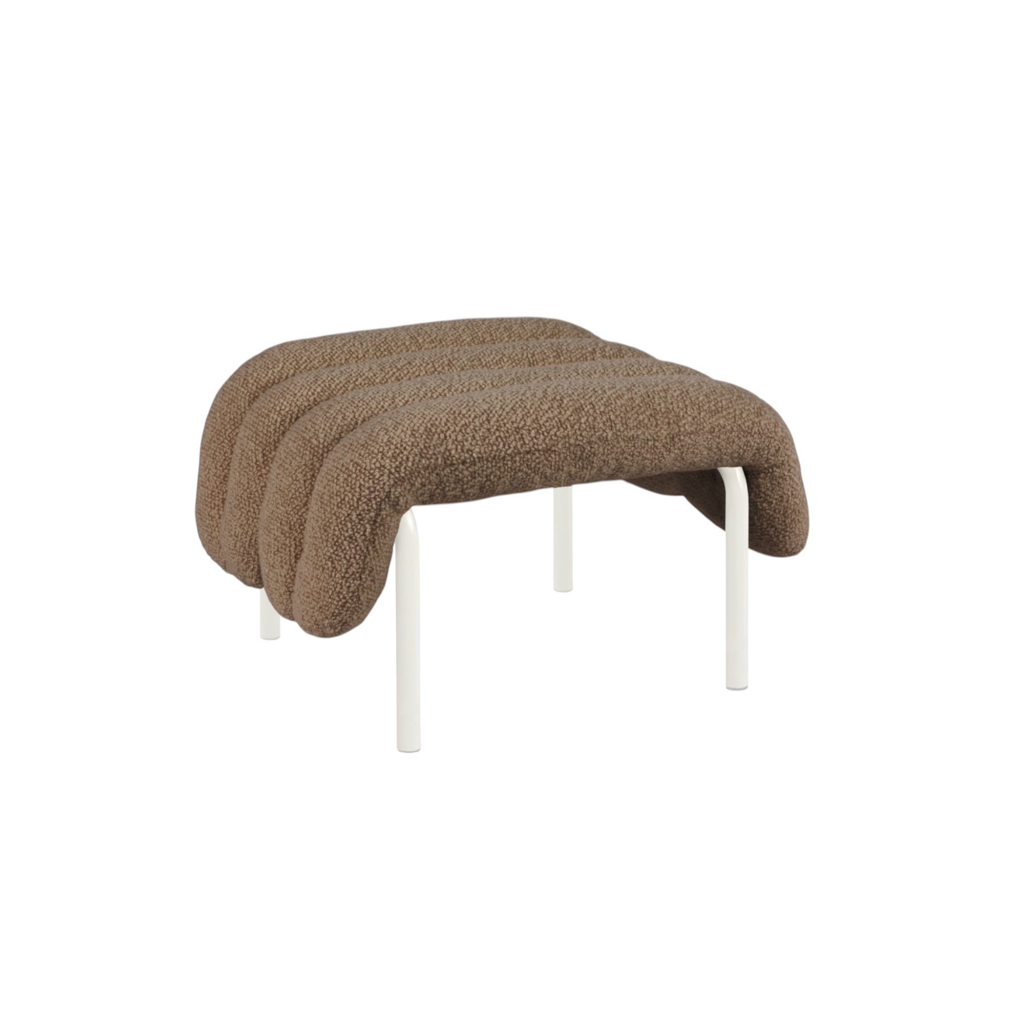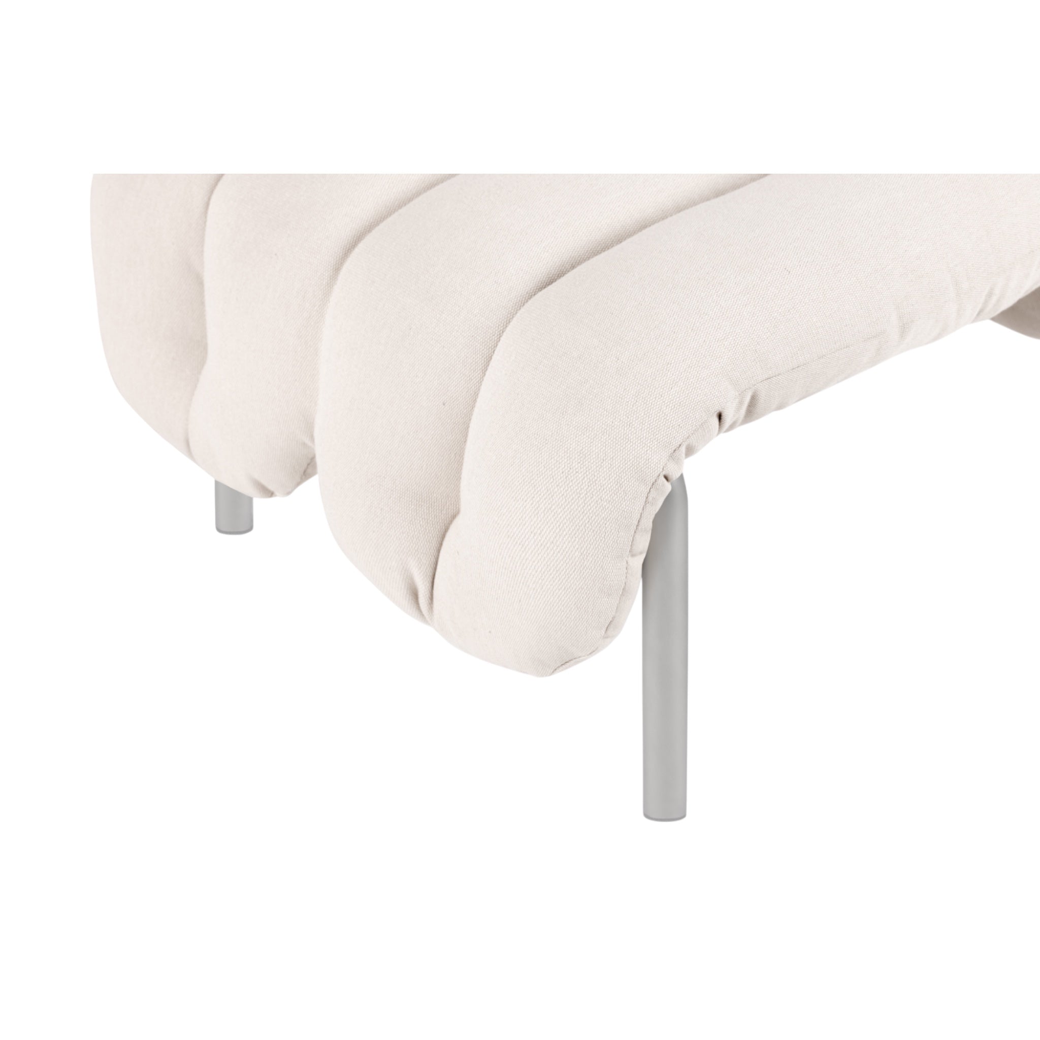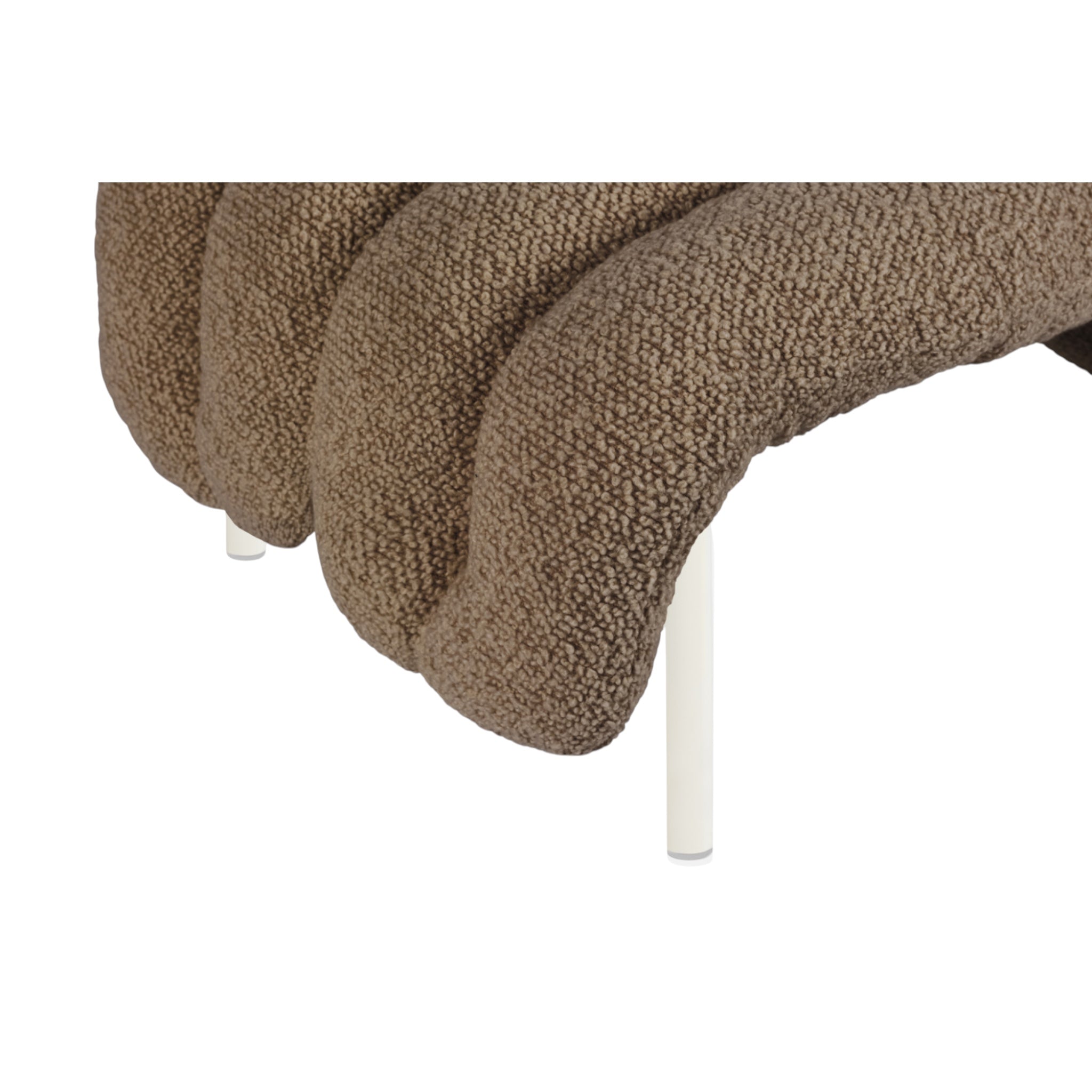 The detachable upholstery of the Puffy Lounge Chair is fat and plump, its generous shape spills freely over the sides of a tubular steel frame which, in stark contrast, is hard-lined and strong. The two key elements of this seating design by Faye Toogood are in purposeful and playful juxtaposition. The elementary frame is inspired by the rational structure of classic modernist design, whilst the extravagant quilt-like upholstery warmly embraces and envelopes, is comforting and reassuring. The Puffy Chair frame is available in powder-coated or sand-blasted steel finishes and a choice of thick canvas, chunky bouclé or luxurious leather upholstery.
