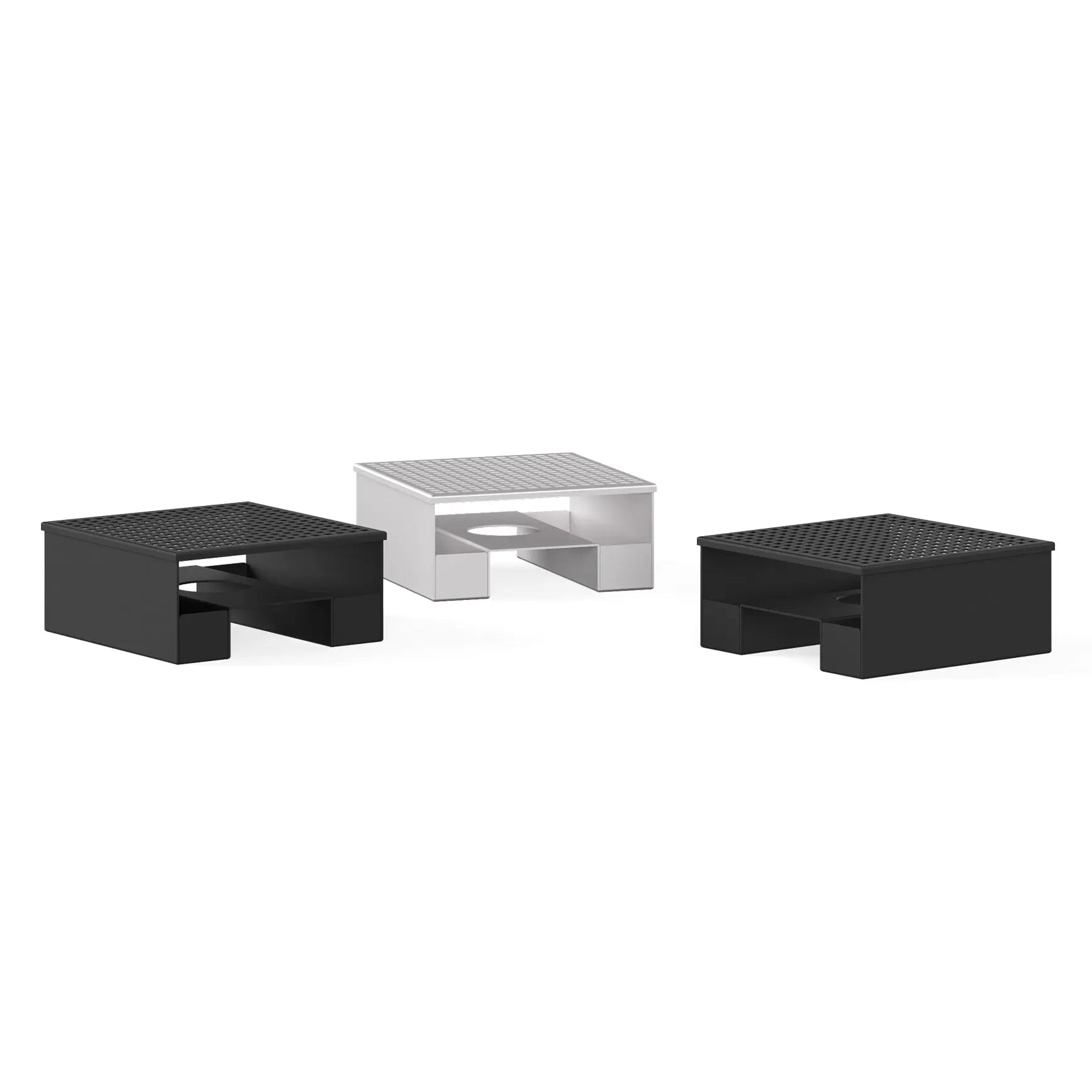The “Rechaud” Food Warmer is a Lehni workshop design from 1984. Thanks to its compact, square shape (16 x 16 cm), it is ideal for small tables. If needed, multiple warmers can be combined to create a larger heating surface. The housing and heating surface are made of aluminium, available either colourless or black anodised. The heat source is a tealight placed in a glass insert.