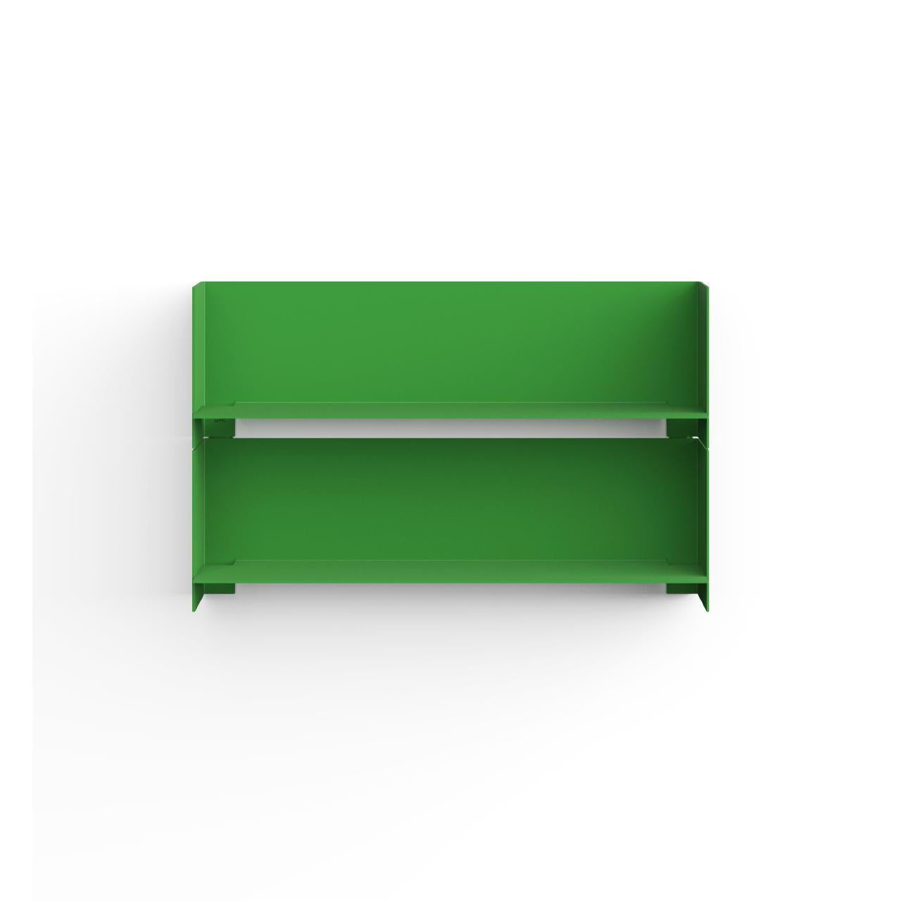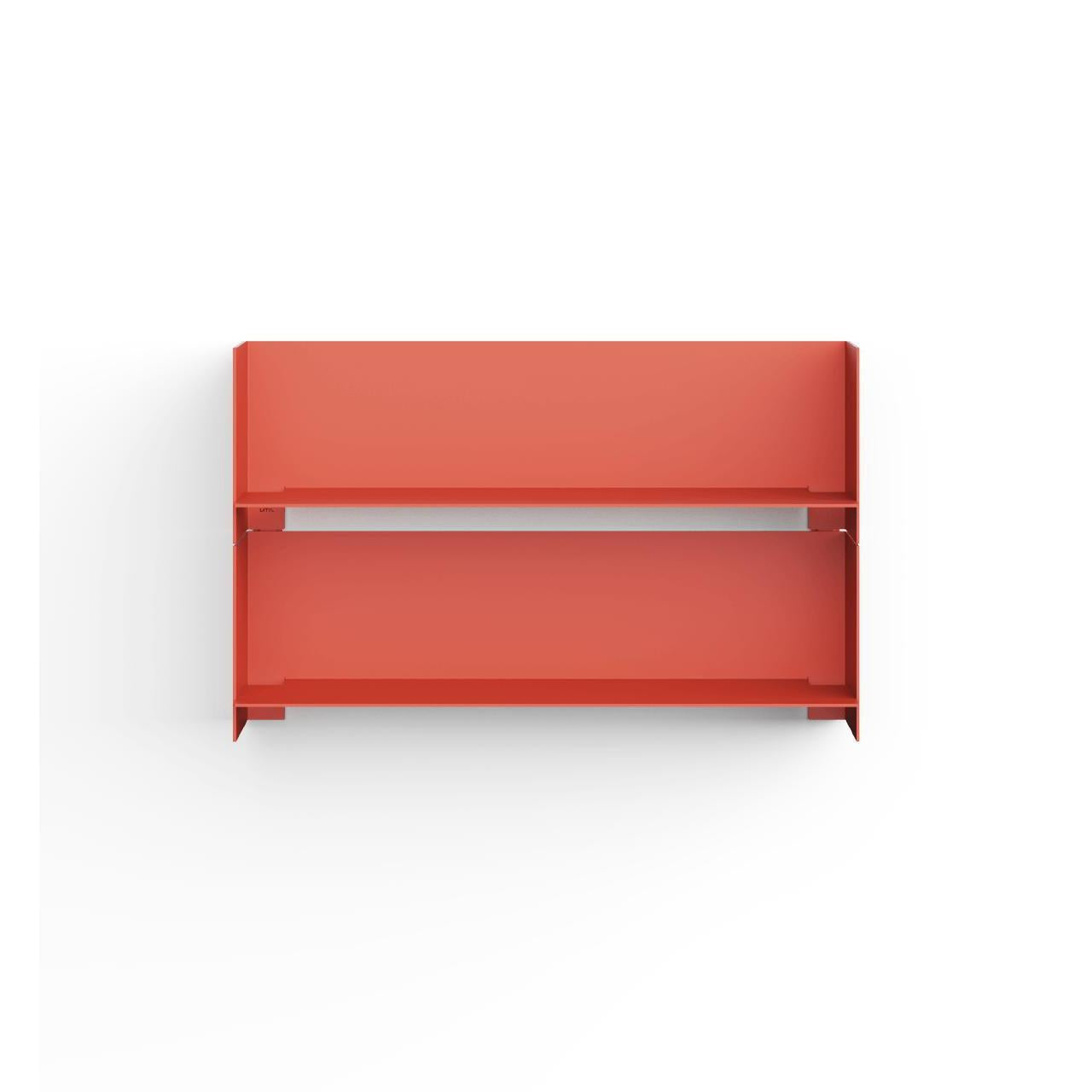 The robust structure features integrated bookends and cable openings, enabling the display of lamps or electronic devices. Even when not in use, the large back panel invites creative use of color. Available as individual shelf units, multiple units can be mounted on a rail to create a multi-level shelving system. Both single and multiple units require only two screws for wall mounting.